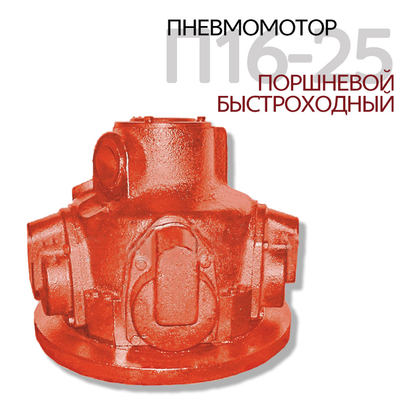 Пневмомотор поршневой быстроходный П16-25, предназначен для привода породопогрузочных машин в шахтах угольной промышленности, черной и цветной металлургии. Пневмомотор рассчитан на эксплуатацию при температуре окружающей среды от +5°С до +40°С и относительной влажности воздуха до 97% при +35°С.