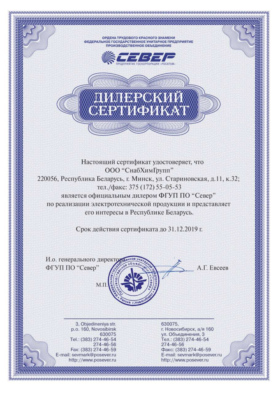 Наш дилерский сертификат