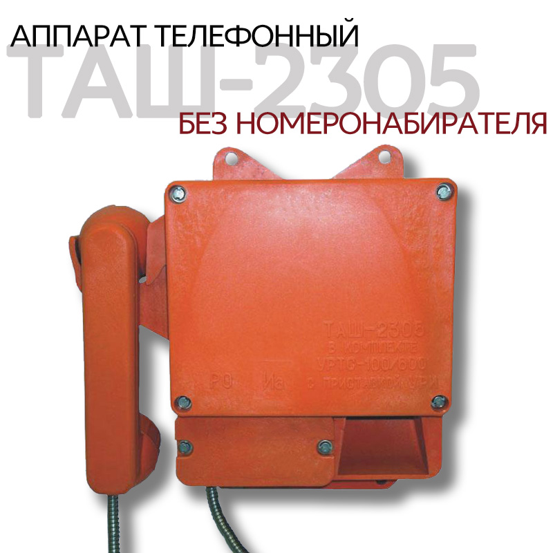 ТАШ-2305 - телефонный аппарат шахтный без номеронабирателя предназначен для применения с коммутатором ручного обслуживания УРТС/100/600 с приставкой УРИ.